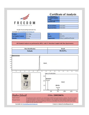 Selank is a synthetic peptide derived from the naturally occurring human tetrapeptide tuftsin. Originally developed to regulate immune response, it’s now widely known for its anxiolytic and nootropic properties—helping reduce stress and anxiety without sedation or dependency.